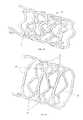 FIG. 4A illustrates is a planar view of an embodiment showing a bioabsorbable stent scaffold pattern which depicts a planar view of a bioabsorbable scaffold featuring repetitive strut pattern in the shape of an S which can be replaced with other designs as shown.FIG. 4A also shows the nested hoop/rings structures.FIG. 4B is an alternate embodiment in a planar configuration which illustrates the nested ring features, wherein the stent strut structure can be replaced with the design encompassed at8.FIG. 4C is a planar view illustration of an embodiment of the invention in which the structural pattern forms helical structures.FIG. 4D illustrates a partial stent structure with hoop or ring structural elements and scaffolding elements in the form as manufactured.FIG. 4E illustrates the stent structure ofFIG. 4D in a partially expanded configuration.FIG. 4F illustrates the stent structure ofFIG. 4D in an expanded configuration.