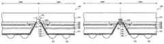 FIGS. 1A-1B are cross sections illustrating conventional fabrication steps of dicing a chip scale package wafer assembly. Referring toFIG. 1A, atransparent substrate10 configured as a support structure for a chip scale package comprises a CMOSimage sensor die20 with a die circuitry attached thereon. The CMOSimage sensor die20 comprises a sensor area with amicro-lens array22 configured as an image plane. Apassivation layer24 is disposed on themicro-lens array22. Aspacer15, definescavity18, between thesubstrate10 and the CMOS image sensor die20. Anencapsulant30 is formed on the substrate encapsulating the CMOS image sensor die20. Anoptional structure35, such as glass, is disposed on theencapsulant30 to strengthen the package. A T-shaped connection40 extending from the die circuitry to a plurality ofterminal contacts70 for the package. The T-shaped connection140 connects the substrate bonding contact (not shown) to thedie bonding contacts25. Abuffer layer50 is disposed on the T-shaped connection40. The T-shaped connection40 is protected by apassivation layer60.