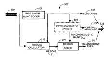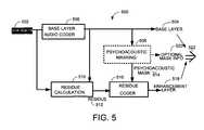 If the base layer coder has psychoacoustic information that can be fully used or partially used by the enhancement layer coder, one may even skip the psychoacoustic masking calculation. In such a case, one simply extracts the psychoacoustic information from the coded base layer bitstream. Because the decoder can extract the same psychoacoustic information from the same coded base layer bitstream, there is again no need to explicitly send the send the psychoacoustic mask to the decoder.