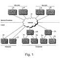 FIG. 1 is a schematic illustration of the present arrangement of systems and resources making up the Internet according to the prior art;