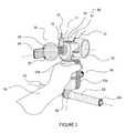 FIG. 2 is a perspective view of the split cylinder manipulandum of one embodiment of the present invention, showing the user grasping and squeezing manipulations on the split cylinder.