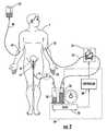 Typically, the controller is also configured to operatepump22 at predetermined maximum and minimum infusion rates irrespective of the weight of the saline bag (determined via a first strain gauge), the weight of the urine bag (determined by a second strain gauge), or the pump operation history. An acceptable maximum infusion rate may be 60 liters per minute in any 15 minute time period or 22 liters per hour at any time. An acceptable minimum infusion rate may be 1 milliliter per hour per kilogram ofbody 10 weight to keep the patient's vein open at the site of theinfusion IV needle30,FIG. 3 irrespective of the weight of the urine bag.
