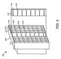 FIG. 5 shows an exemplary embodiment of aportion500 of a switching system comprising SP8T switch modules coupled to exemplary boards of an antenna array. In particular,FIG. 5 shows fourSP8T switch modules510,512,514,516, coupled to threeboards520,522,524 of antenna elements. (InFIG. 5, the antenna array actually has eight boards of antenna elements for a total of 64 antenna elements; only 24 antenna elements are shown for ease of illustration.) The exemplarySP8T switch modules510,512,514,516 use a binary-tree structure composed of three layers of SPDT switch elements. Three suchSPDT switch elements517,515,519 are highlighted inSP8T switch module510, one for each of the three layers. Thus, according to the illustrated embodiment, each of the exemplarySP8T switch modules510,512,514,516 comprises a total of seven SPDT elements. In particular embodiments, theSP8T modules510,512,514,516 are constructed of aluminum using a split-block waveguide structure. The SPDT elements (such asSPDT elements517,515,519) can comprise a variety of components, but in certain embodiments comprise a duroid fin-line printed circuit junction which uses shunt pin-diodes to direct the millimeter-wave signal to the desired output waveguide. The pin-diodes of these embodiments can be controlled by electronic driver circuitry (not shown) mounted in a housing on top of the split-block waveguide structure.