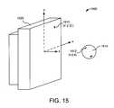FIG. 15 is a schematic diagram1500 illustrating the coordinates as used in this discussion relative to the aperture of anexemplary antenna array1520. InFIG. 15, the primed coordinates represent the transceiver position1510, and the unprimed coordinates represent atarget point1512 on thetarget1514. If thetarget1514 is characterized by a reflectivity function, ƒ(x, y, z), then the response measured at the transceiver position1510 will be the superposition of the reflectivity function times the round trip phase to thetarget1514. The measurement plane (not shown) is at z=Z1, which is typically negative. The round-trip phase is: