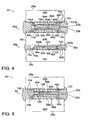 FIG. 4 is a sectional view of a battery comprising two facing battery cell on adjacent and separate substrates and a third battery cell on a substrate which also serves as a cap;