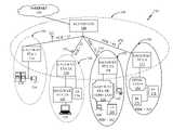 In this exemplary embodiment, “GS1”114 is operatively coupled to an information appliance (IA)118 and acomputer116. The two devices may in some embodiments form a local area network that is not controlled by a CCO. “GS2A” is operatively coupled to anIA136 and to another gateway station—“GS2B”142. “GS2B” is operatively coupled to acomputer138. The twogateway stations134,142 typically coordinate and communicate with each so that the devices coupled to these gateways may obtain the necessary bandwidth to communicate with theInternet190 via theaccess CCO100. “GS3A” is operatively coupled to acomputer162 and to another gateway, “GS3B”164 which also functions as a home CCO. “GS3B”164 is operatively coupled to acomputer168 and to anIA166. “GS4”174 is operatively coupled to ahome CCO184, which in turn is operatively coupled to twoIAs176,178.