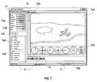 FIG. 7 shows an example of a representative graphical user interface (GUI) for a flight analysis application that executes on a separate desktop or handheld computer. This flight analysis application processes the data captured by themobile sensor10, performs any correctional adjustments required to the data, creates a three-dimensional representation of the motion of the sensor corresponding to the data, and displays the recreated event on the computer monitor. The features described herein are examples only and are not meant to limit the functionality in any manner. Themain window70 is a typical graphical user interface (GUI) window. A set of pull-downmenus71 provides a list of typical commands and command types. Asynthetic vision window72A is dedicated to displaying the recreated playback on a synthetic three-dimensional environment, which may include actual satellite or high-altitude photos of the environment where the data was recorded. Asimulated gauge panel72B provides a functioning set of simulated aircraft gauges and instruments. A portion of the screen is dedicated to the display of specific data parameters, including theparameter labels73A andtext boxes73B containing the numeric values associated with these parameters. Another portion of the screen is dedicated to providing alternate views of the playback to the operator, including button controls featuring default “camera angles”74A, button controls used to toggledisplay items74B on and off, and atab control device74C for selecting between three-dimensional (3D) viewing of the data and two-dimensional (2D) viewing of the data. VCR-style controls75 (such as forward, reverse, play, and pause) are provided to allow the operator to move backward and forward through the playback at will, and aprogress indicator bar76B is provided to indicate the current position in the playback, as well as to act as a slider control for moving to any point in the playback. A verticalzoom slider bar76A is provided to move the “camera” in to and out from the aircraft during the playback. Additional data displays77 provide information to the user, such as current playback speed, a time readout for the current playback, and the number of graphics frames per second being displayed.