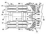 Illustrated inFIG. 4 is a partial side view of thetrailer20 viewed along line4-4 inFIG. 1, whileFIG. 5 is a partial bottom view of thetrailer20 viewed along line5-5 inFIG. 1. BothFIGS. 4 and 5 illustrate the airflow created by the embodiment of theair manipulator assembly12 illustrated inFIG. 3. InFIG. 4, two horizontal airfoils, designated individually as an upperhorizontal airfoil34aand a lowerhorizontal airfoil34b, direct the portions of the airflow under thetrailer axle assembly32. The portion of the airflow deflected by the concave downward air-deflecting surface65 (FIG. 7) of the upper and lowerhorizontal airfoils34a,34bis directed in a generally downward direction toward the surface of theroad19 on which thevehicle10 is traveling while underway. The portion of the airflow deflected by the upper and lowerhorizontal airfoils34a,34bcan optionally be deflected a suitable extent to pass between theroad19 and components of thetrailer axle assembly32 such as theaxle35,tires37, or a combination thereof, for example. So deflecting the portion of the airflow reduces the aerodynamic resistance experienced by thevehicle10 while underway relative to the aerodynamic resistance experienced by thevehicle10 without theair manipulator assembly12.