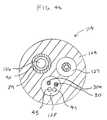 In one embodiment, as shown inFIGS. 2,3a,3band3c, thetubing24 of the tip section has a first off-axis lumen26 and a second off-axis lumen28. The off-axis lumens26 and28 extend through diametrically opposed halves of thetip section14. Thefirst lumen26 carries an irrigation tube, and thesecond lumen28 carries electrode lead wires and temperature sensor wires.
