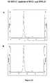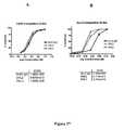 FIG. 26 shows the results of two competitive ELISA experiments to compare the relative hA20/hLL2 binding avidities of DNL1, DNL2 Hex-hA20 and Hex-hLL2 with the parental IgGs. Microtitre plates were coated with hA20 or hLL2 IgG at 5 μg/ml. Dilution series of the HIDS were mixed with anti-Ids specific to hA20 or hLL2 IgG, which was maintained at a constant concentration (2 nM). The level of binding of the anti-Ids to the coated wells was detected using peroxidase-conjugated-Goat anti-Rat IgG and OPD substrate solution. The results are plotted as % inhibition (of anti-Id binding to coated wells) vs. concentration of HIDS. EC50(the effective concentration resulting in 50% inhibition) values were derived using Prism software. The HIDS were used to compete for binding to (A) WI2 (hA20 Rat anti-Id) in hA20-coated wells or (B) WN (hLL2 Rat anti-Id) in hLL2-coated wells.