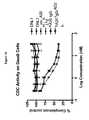 FIG. 35 shows the antibody-dependent cellular cytotoxicity (ADCC) of DNL1, compared with hA20 IgG, Rituximab and hLL2 IgG, assayed with freshly isolated peripheral blood mononuclear cells. Both rituximab and hA20 IgG had potent ADCC activity, while DNL1 did not exhibit any detectable ADCC.