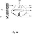FIG. 1A depicts the top view of anose cover110 with aremovable strap111 in one embodiment of the invention. Theremovable strap111 allows for thenose cover110 to be attached to all sorts of eyewear. Thenose cover110 comprises a flexible material with vertical creases (upper114 and lower115), twohorizontal slits113, and an attachedsoft metal strip112. In this embodiment, the removable strap can be made out of “hook and loop” material, also known as velcro. Also, in this embodiment, thenose cover110 can be fabricated in many different materials. For example, some materials include laminated foam fabric, fleece, paper, plastic, metal, thermal conductive materials (e.g., hot and/or cold pack), and laminated wire mesh. When using laminated foam fabric, the edges of the nose cover may be heat sealed, and/or the foam fabric itself may embossed, printed, silkscreened, or sublimated with a logo of some sort.