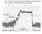 Prior to the Valsalva maneuver PCWP averages less than about 20 mm Hg. At the initiation of the Valsalva maneuver, PCWP increases coincidentally with rising upper airway pressure, maintaining a nearly constant differential with upper airway pressure during its initial rapid rise. Over the next three to four seconds the PCWP then declines relative to upper airway pressure remaining nearly equal to upper airway pressure during the remainder of the plateau phase. Upon release of strain and resumption of airflow, upper airway pressure and PCWP return to baseline values.