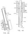 FIG. 50 is a right side view in elevation, taken in longitudinal cross section of a sleeve incorporating a flap distal closure that is selectively actuated on a sleeve to shield a sharp tip;