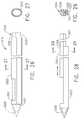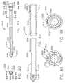 FIG. 56 is a right side view in elevation, taken in longitudinal cross section of a distal portion of an obturator having a lateral notch accentuated by flanking marker bands and communicating with an underlying vacuum lumen;
