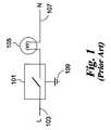 For a conventional wall switch module, power may be supplied by existing wiring in an electrical switch box. Generally, only 2 wires are fed into an electrical switch box—a live feed from the AC power supply to the switch and a wire extending from the switch to the load. In most cases, the other side of the load is connected directly to the neutral of the AC power supply without returning to the switch box.FIG. 1 illustrates a circuit diagram of atypical wall switch101. As shown inFIG. 1,switch101 is connected to thelive terminal103 of an AC power supply, the other end of theswitch101 is connected toload105, in this instance a light bulb. Neutral107 is connected to the other side ofload105 and is not located inside the wall switch box. Most electrical systems include anearth ground connection109 to the electrical switch box containing theswitch101, mainly for safety considerations and to satisfy electrical code requirements.