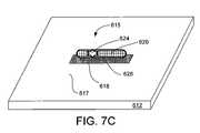 FIG. 7A illustrates abinding site615 prepared on asubstrate612 at a deterministic location. Thehole616 through location andalignment layer614 has awidth aspect710 and alength aspect712. Thebinding patch618 is disposed on the portion of thesubstrate surface617 exposed at the bottom of thehole616. In the embodiment shown, thebinding patch618 is of uniform composition, but it will be appreciated that a binding patch of varied composition can be used, for example, similar tobinding patch318 discussed above, comprising multiple sections such as section318-1 and318-2.