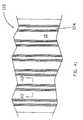 FIG. 75 is a sectional view of the structure after the lamination depicted inFIG. 74 plus an additional step of applying insulatingbeads56,60 to the terminal edges of theindividual units308. As shown inFIG. 75, at least a portion oftop contact surface48 remains exposed following this lamination. In addition, the lamination is characterized byrepeat dimension34, which is slightly greater than dimension