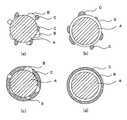 The structure of the composite composed of the oxidation-reduction catalyst and the proton-conductive oxide (hereinafter often referred to as “catalyst composite”) may vary depending, for example, upon the type and amount of the material used, or the production process of the composite. An example of the structure is shown inFIG. 1. Specifically, the oxide B may be unevenly distributed on the surface of the catalyst carrier A (FIGS. 1(a) and (c)), or alternatively may be in the form of a layer formed so as to continuously cover the surface of the catalyst carrier A (FIGS. 1(b) and (d)). Further, the oxidation-reduction catalyst C may be supported on the surface of the catalyst carrier A directly or through a phase of the oxide particles B. In this case as well, the oxidation-reduction catalyst C may be unevenly distributed on the surface of the proton-conductive oxide (FIGS. 1(a) and (b)), or alternatively may be in the form of a layer formed so as to continuously cover the surface of the proton-conductive oxide (FIGS. 1(c) and (d)).