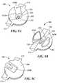 FIGS. 5A-5C and6A-6F respectively schematically show additional views of the rotatingmember180 andinternal gland230. Specifically,FIGS. 5A-5C schematically show more details of the rotatingmember180 in the previous figures. As discussed above, the rotatingmember180 may be generally hemispherical in shape and have protrudingmembers210 that interact with theinternal gland230 to bias the rotatingmember180 toward the closed position. The protrudingmembers210 can be wing-like structures located on either side of the rotatingmember180. Alternatively, the protrudingmembers210 may also be a single continuous structure that wraps around all or part of the rotatingmember180. The protrudingmembers210 still may take on other arrangements. The discussed arrangements therefore are for illustrative purposes and not intended to limit the scope of all embodiments.
