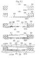 - (12) A commercially available photosensitive dry film is bonded to thesubstrate30 which has been subjected to the above processes, a chromium glass mask is mounted, exposure is performed at 40 mj/cm2and then a development process is conducted with 0.8% sodium carbonate, thereby providing a plating resist54 having a thickness of 25 μm. Next, electroplating is conducted to form an electroplatedfilm56 having a thickness of 18 μm (seeFIG. 48(B)).
