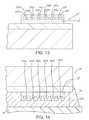 FIG. 12 is a sectional view likeFIG. 11 depicting additional exemplary steps to fabricate a polymer crack stop structure;