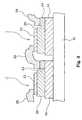 FIG. 3 is a partial plan view of a plurality of LEDs monolithically formed on thesubstrate10.FIG. 4 is a diagram showing a IV-IV cross section ofFIG. 3. InFIG. 3,a p electrode22 and ann electrode24 are formed on the upper surface of theLED1 as shown inFIG. 1. Thep electrode22 and then electrode24 ofadjacent LEDs1 are connected through anair bridge line28 and a plurality ofLEDs1 are connected in series.