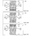 FIG. 16A depicts theshutter1602 in an open position,FIG. 16B depicts theshutter1602 in the midst of a transition to the closed position, andFIG. 16C shows theshutter1602 in a closed position. Theshutter assembly1600 relies upon an electrostatic comb drive for actuation. The comb drive is comprised of a rigidopen electrode1608 and a rigidclosed electrode1610. Theshutter1602 also adopts a comb shape which is complementary to the shape of the open and closed electrodes. Comb drives such as are shown inFIG. 16 are capable of actuating over reasonably long translational distances, but at a cost of a reduced actuation force. The primary electrical fields between electrodes in a comb drive are aligned generally perpendicular to the direction of travel, therefore the force of actuation is generally not along the lines of the greatest electrical pressure experienced by the interior surfaces of the comb drive.