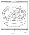 FIG. 17 is a schematic illustration showing various anatomical structures on a 2-D slice image, where that 2-D slice image has been taken axially through the abdomen of a patient, at a location above the aortic/iliac branching;