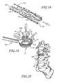 FIGS. 242 to 248 illustrate an implant B10, with apertures B11 (FIG. 243) and B12 (FIG. 248) that receive a guide wire and permit implant B10 to slide therealong. Opening B15 (FIG. 242) extends through implant B10. Circular openings B13 (FIG. 247) may or may not be formed through wall of implant B10. Toothed openings B14 are formed in implant B10 and initially widen as the distance into the openings B14 from the outer surface of implant B10 increases (FIG. 246). Toothed openings B14 can be configured in any desired manner and can, for example, be configured with only a portion of the toothed opening diverging into the implant like opening A21B inFIG. 212A.