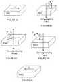 The magnetic memory device described above and shown inFIG. 4 has two stable magnetic states and is able to store one bit of information. According to another embodiment of the present invention, a magnetic memory device can be constructed to store multiple bits of information.FIG. 7 shows an example of a free magnetic layer FM2 with four stable magnetic states. A magnetic memory device comprising a free magnetic layer FM2 with four stable magnetic states is able to store two bits of information. In this embodiment, current pulses are applied to switch the magnetization between directions that differ by 90° instead of 180°. This can be accomplished by current pulses of a different form. For example, the current pulses can be smaller in amplitude and/or shorter in duration. The readout layer (FM3) is then aligned such that each of the four magnetization states has a different resistance. This requires that the readout layer magnetization not have an in-plane component that points parallel to any of the four states nor at 45° to these states.