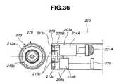 As shown inFIG. 34 andFIG. 36, thecamera head adapter270 internally comprises transmission and reception coils213 (213a,213c), transmission and reception/control circuits214 (214A,214B), animage pickup device220, anillumination element221A, alens271 and twocover glasses272.