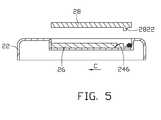 Thehousing22 is rectangular shaped and relatively flat. Thehousing22 comprises anouter surface220, and an inner surface221 (clearly shown inFIG. 4). Thehousing22 has abattery chamber222 defined therein and exposed through theoutside surface220. A firstbattery chamber sidewall224 and a secondbattery chamber sidewall226 enclose thebattery chamber222. Thefirst sidewall224 is located opposite to thesecond sidewall226. Thebattery chamber222 is configured (i.e., structured/arranged) for accommodating thebattery26 therein.