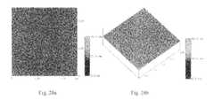 Any conventional method may be used for the removal of the polymer film. Ozone oxidation, oxygen plasma or calcination is preferably used for the present subject matter. The sample may be placed under 250 sccm of 100 g/m3O3in O2gas mixture at 473K to 723 K. The sample is then imaged using AFM to image the film morphology.FIGS. 16(a) and (b) andFIGS. 18(a) and (b) show a TiO2nanotextured surface that consists of nano-bottle features, i.e., a semi-sphere with a narrow hole at the top; andFIGS. 19(a) and (b),FIGS. 20(a) and (b) andFIGS. 21(a) and (b) show SiO2nanotextured surface that comprises nano-bottle features. It can be seen from the figures that the nano-bottles have uniform sizes and cover the entire area of the sample.