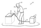 When theoperator18 applies current from thepower supply12 to electrode, and begins the welding operation, anarc26 is developed between the electrode and a work piece. Theconduit14 and theelectrode16 thus deliver current and voltage sufficient to create theelectric arc26 between theelectrode16 and the work piece. Thearc26 melts the metal (the base material and any filler material added) at the point of welding betweenelectrode16 and the work piece, thereby providing a joint when the metal cools. Thewelding systems10 may be configured to form a weld joint by any known technique, including shielded metal arc welding (i.e., stick welding), metal inert gas welding (MIG), tungsten inert gas welding (TIG), gas welding (e.g., oxyacetylene welding), and/or resistance welding.