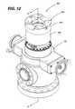 FIG. 12 is a perspective view of a rotating control head in accordance with a third embodiment of the present invention, wherein the rotating control head is a high pressure rotating control head with a ram style bearing assembly retaining apparatus.