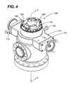 FIG. 4 is a perspective view of a rotating control head in accordance with a second embodiment of the present invention, wherein the rotating control head includes a ram-style bearing assembly retaining apparatus in accordance with the present invention.