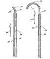 Theholder24 comprises thecurved template22 defining a distal end, and a generally straight,elongated shaft portion28 defining a proximal end. Depending on the implantation technique, theshaft28 may be flexible or rigid. Thecurved template22, on the other hand, is highly flexible, preferably elastic. Specifically,curved template22 may be formed of a biocompatible metal such as stainless-steel or Elgiloy, or from a super-elastic material such as Nitinol. The material used for thecurved template22 may be the same as that used for theshaft portion28, or the two portions may be formed of different material and connected using conventional means. The usage of theholder24 will be described below with respect toFIGS. 3A-3C.