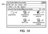 In another embodiment of the present invention, a user at a device, such as laptop12(3), that is not a member of a group, or is a member of a group but desires joining another group, selects a “join a Group.html”icon54 displayed in a user interface window16(1) shown inFIG. 8. In response, the laptop12(3) opens one or more ports in its I/O unit that are capable of sending and receiving range-limited signals13. The laptop12(3) in this embodiment listens for any invitations to join groups as described above, and is further configured to send theappropriate signals13 to another machine which sends an invitation, such as laptop12(1), to accept or reject an invitation to join a file sharing group. Thereafter, laptop12(3) is added to the file sharing group as described above in accordance with embodiments of the present invention.