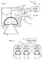 - 2) Afirst mask185 is disposed between thecavity aperture183 and the field to be illuminated. Theaperture183 forms a substantially Lambertian energy distribution area. Themask185 constructively occludes a portion of Lambertian virtual source formed at theaperture183, with respect to the field of intended illumination. The surface of themask185 facing towards theaperture183 is reflective. Although it may be specular, typically this surface is diffusely reflective.