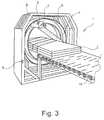 FIG. 3 shows a horizontal wrapping stretch machine; and