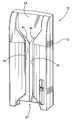 More specifically, the plurality ofapplicator segments242 may include aninterior channel243 having a substantially concave, transverse cross-sectional configuration, wherein theinterior channel243 extends along the length of theapplicator segments242 from a front or free end thereof to the exposed surface of thebase260. Moreover, the inclined, angular orientations of the plurality ofapplicator segments242 along with the provision of the concaveinterior recesses243, will serve to provide a cleaning action on the engaged portions of thehead portion14 and also have a tendency to at least partially remove excess fluid and unwanted remnants from thehead portion14, by directing such remnants away from the engaged surfaces of thehead portion14. As a result, the engaged portions of thehead portion14 will be cleaned and free of unwanted remnants. In order to provide an appropriate an intended cleaning action on thehead portion14, the plurality ofapplicator segments242 are formed of a flexible, resilient material which facilitates an at least minimal conforming of each of theapplicator segments242 to the surfaces of thehead portion14 which are engaged thereby. However, the plurality ofapplicator segments242 may have at least a minimal amount of semi-rigid characteristics to be “shape stable”. As such theapplicator segments242 are able to assume their intended position, orientation and configuration as clearly represented inFIGS. 15 and 16 after engaging and performing a cleaning action on thehead portion14 as it moves along the path oftravel30,31 on the interior of the housing orcasing12 and along the length of thecartridge200.