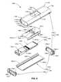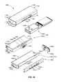 Referring toFIGS. 19(A) and 19(B), during a final assembly stage, front andrear cap portions132B and134B of plastic housing assembly130B are mounted onto front andrear end portions113B and115B, respectively, oftubular casing110B. In particular,front cap portion132B is mounted ontofront end portion113B such thatsleeve portion136B is inserted between thecarrier assembly140B andtubular casing110B, and such thatplug connector150B is received insidefront opening137B. In even further detail,sleeve wall portion136B-1 is inserted between thecarrier assembly140B andupper wall portion111B-1 oftubular casing110B,sleeve wall portion136B-2 is inserted between thecarrier assembly140B andlower wall portion111B-2, andsleeve wall portion136B-3 is inserted between the carrier assembly140E andside wall portion111B-3. Oncefront cap portion132B is fully inserted such thatwall138B-1 coversfront end portion113B,rear cap portion134B is mounted ontorear end portion115B such that lock pawls139B-1 engage (snap-couple into) corresponding lockinggrooves139B-2 formed onwall portions136B-1 and136B-2.FIG. 19(B) showsdevice100B after assembly offront cap portion132B andrear cap portion134B ontotubular casing110B is completed. The operation ofdevice100B is similar to that described above with reference toFIGS. 14(A) to 14(C). Note that, due to the presence ofsleeve portion136B betweentubular casing110B andcarrier assembly140B (see FIG.19(A)), when actuatingbutton163B is pressed intotubular casing110B during deploy or retract operations,carrier assembly140B slides onsleeve wall portion136B-3 instead of ontubular casing110B, thereby avoiding plastic-on-metal wear.
