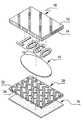 In yet another exemplary embodiment, the overprint coating can be patterned or colored, or both, in a variety of ways. For example, as shown inFIG. 1, a pattern can be achieved by alternating coating weights to create a series of lands (i.e., raised areas)22 and grooves (i.e., lower areas)24. This pattern can be a series of sinusoidal waves, as seen inFIG. 1, or some other pattern. Theland22 elements of the pattern may be higher or raised with respect to thegrooves24 on theadhesive side26 of thecoating20. Thegrooves24 can help move entrapped air and other gasses from the back side of the label during the adhesive wipe down process on a labeling machine. Providing gases with escape paths could reduce the appearance of bubbles and glue voids behind the film, which detract from the appearance of the applied label. Thegrooves24 also allow water in a water-based adhesive to wick away to the edges of a cut-and-stack label without the use of a hydrophilic coating or layer.