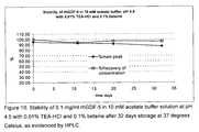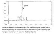 FIG. 10 shows the stability of 0.1 mg/ml rhGDF-5 in 10 mM acetate buffer solution at pH 4.5 with 0.01% TEA-HCI and 0.1% betaine after 32 days storage at 37 degrees Celsius, as evidenced by HPLC.