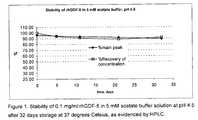 BRIEF DESCRIPTION OF THE FIGURESFIG. 1 shows the stability of 0.1 mg/ml rhGDF-5 in 5 mM acetate buffer solution at pH 4.5 after 32 days storage at 37 degrees Celsius, as evidenced by HPLC.