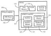 Theparser102 on the client may be implemented using any suitable PDF parser program, including the Adobe® PDF parsing library and open source PDF parsing libraries such as XPDF or GhostScript. Preferably but not required, thePDF parser102 uses a parsing algorithm that is substantially identical to the parsing algorithm used by thePDF rendering module122 on the printer so that the parser can accurately predict the sequence of the PDF data that will be needed by the rendering module. Different PDF parsing algorithms may generate slightly different transfer orders, such as the order of resources and commands for each page, but such differences typically do not impact the overall rendering performance. Because the data transfer by theparser102 will typically be faster than the PDF rendering process by therendering module122, by the time the rendering module processes a new page, the resources and commands for that page will most likely have been transferred to the printer already.