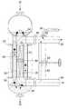 FIG. 4 is a third embodiment of the invention with multiple valves in the centerpipe and multiple passes through the catalyst bed; and