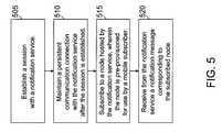 FIG. 5 shows a flowchart for receiving a notification message by a mobile subscriber. Initially, a session is established with a notification service (505). A persistent communication connection is maintained with the notification service after the session is established (510). A node hosted by the notification service also is subscribed to, wherein the node is pre-provisioned for use by a mobile subscriber (515). Once the node has been subscribed to, a notification message corresponding to the subscribed node is received from the notification service (520).