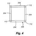 FIG. 2 illustrates anIMLI structure100 in accordance with other embodiments of the present invention. In particular, some or all of the support posts104 are connected to adjacent support posts104 bybeams204. In accordance with embodiments of the present invention, thebeams204 may be fabricated from the same material as thepost elements112. In accordance with still other embodiments of the present invention, thebeams204 may be provided as part of grid elements or integral beam and poststructures208 comprising fourpost elements112 and fourbeams204. An example integral beam andpost structure208 is illustrated in plan view inFIG. 4. The purpose of thebeams204 is to assist in the handling and alignment of thepost elements112 during assembly, and to reinforce the buckling strength of the support posts104. Thebeams204 can be arranged so they connect all the support posts104 in a two-dimensional grid. Alternatively, thebeams204 can be arranged so there are gaps in thegrid pattern212, as shown, to reduce mass, provide flexibility to thestructure100 and to provide a place to more easily cut the assembly. Thebeams204 can also be disposed within eachvolume122 betweenadjacent sheets120, or in less than everyvolume122. As yet another alternative, groups ofpost elements112 formed by interconnectingpost elements112 withbeams204 in a first number of thevolumes122 can be connected to other groups ofpost elements112 bybeams204 in a second number ofvolumes122, where the first number is greater than the second number, to provide greater control of the separation of adjacent support posts104 while also facilitating cutting of theIMLI structure100. Other arrangements or combinations ofbeams204 and postelements112 are also possible.
